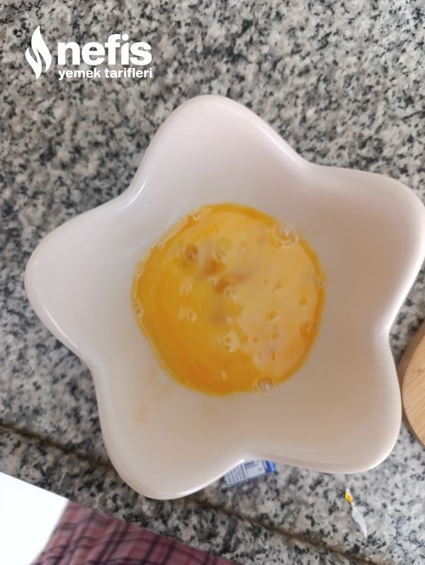 3. Bir kaba yumurtayı kırıp güzelce karıştıralım ve salamin üzerine koyalım bir kere daha karıştıralım.