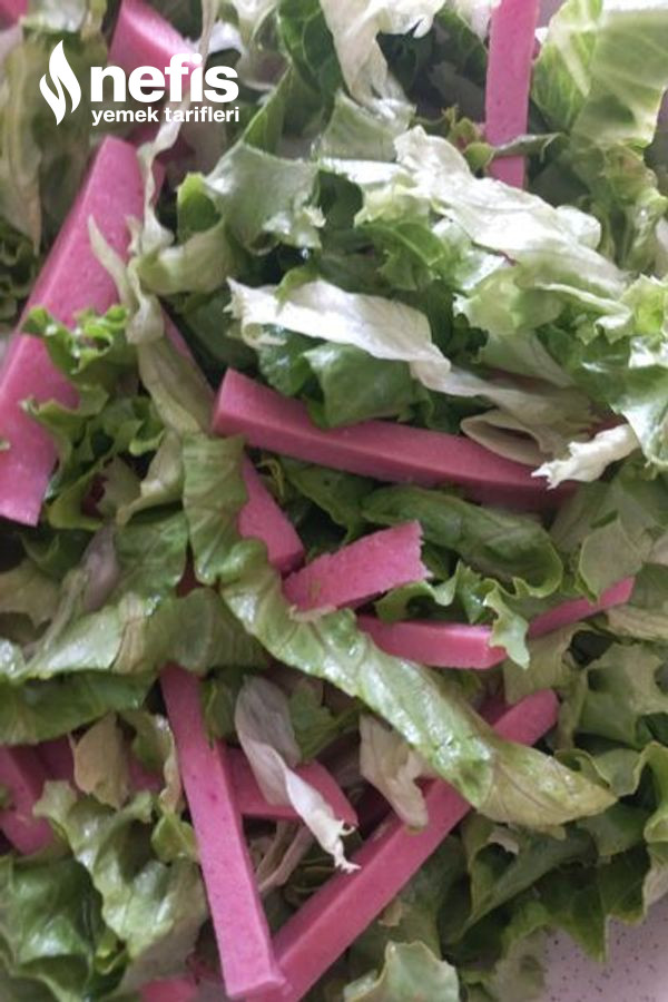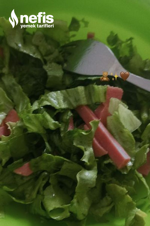 Salata Salata Tanımı İçin Malzemeler 4-5 yaprak marul Salam Zeytinyağı Salata Tanımı Nasıl Yapılır? Marulları büyükçe doğrayın. Salamları parmak parmak doğrayın. Üzerine zeytin yağını dökün ve karıştın. Salata Tanımı Fotoğraflı Yapılışı İlginizi Çekebilir:Dev Bisküvi Pastası
