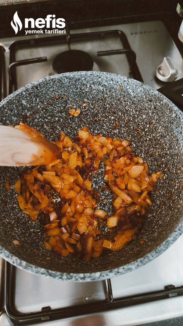 - Soğanı ekleyip, yavaşça pembeleşene kadar kavuralım.