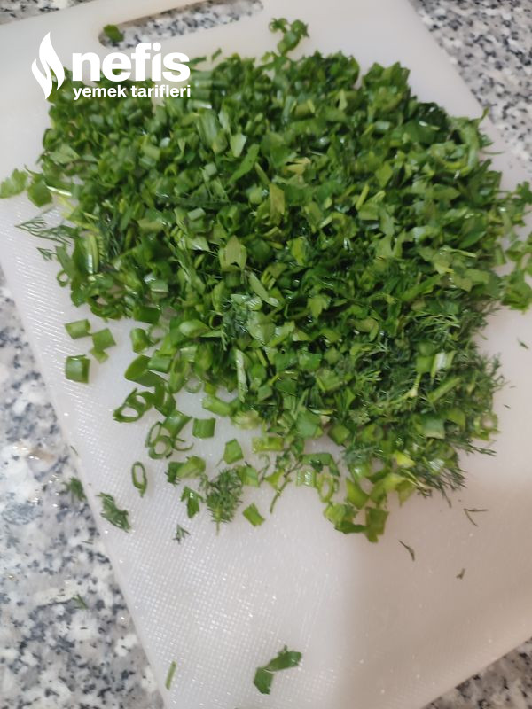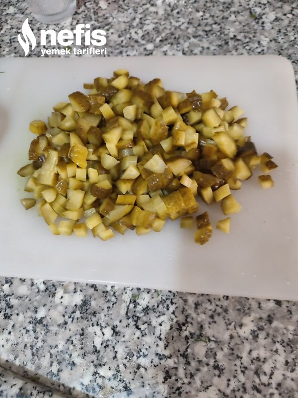 - Yeşilliklerimizi ve kornişon turşumuzu doğrayalım.