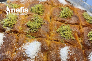 - Fırından alın ve 2 dk bekleyin ve sıcak tatlıya soğuk şerbeti döküp dinlenmeye bırakın.