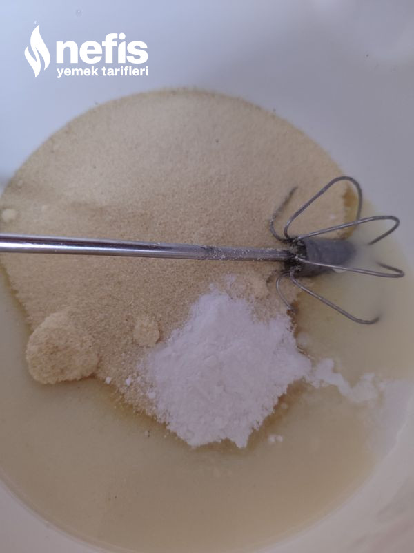 1. Hamuru için; şeker, yoğurt ve sıvı yağı yoğurma kabına alıp güzelce çırpıyoruz.