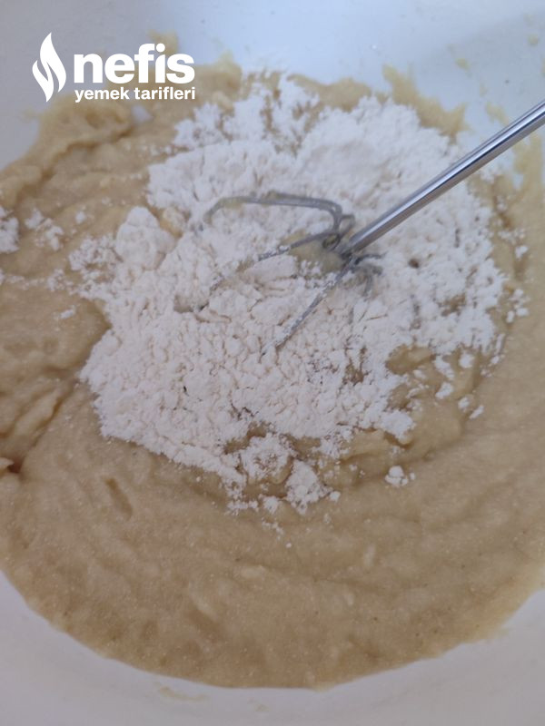 2. Sonra irmik, vanilin ve karbonatı da alıp tekrar güzelce çırpıyoruz.