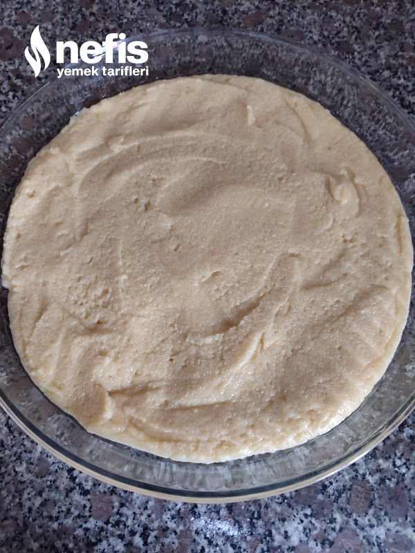 4. Yağladığımız borcama hamuru döküp güzelce yayıyoruz.