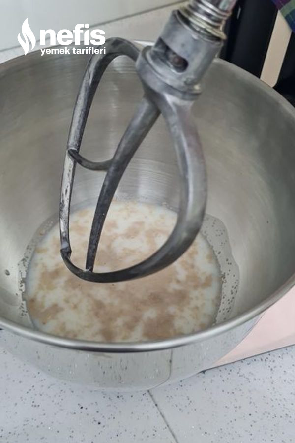 1. Öncelikle ılık sütü, suyu, şekeri, tuzu ve mayayı bir kapta biraz bekletelim.