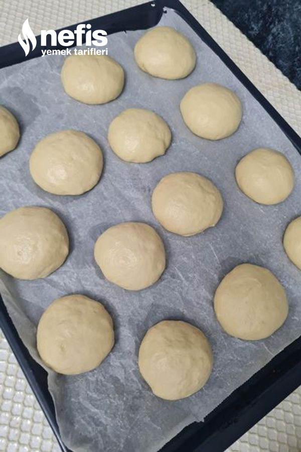 3. 1 saat mayalandıkdan sonra ister küçük ister büyük yuvarlayıp fırın tepsisine koyalım.