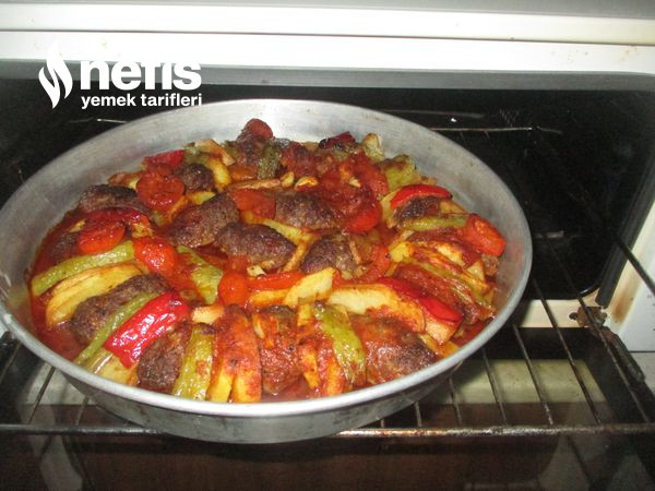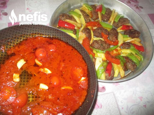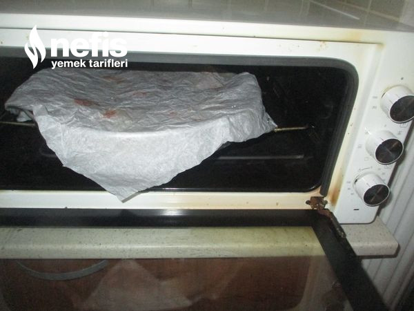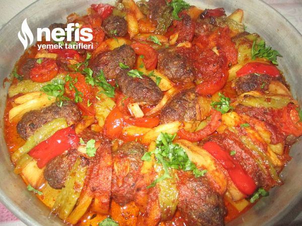 6. Bu sosu sonra köftelerin üzerine gezdirerek dökelim. Üzerine yağlı kağıt su ile ıslatıp sıkalım, üzerine kapatalım. Evvelden ısıtılmış fırında 180 derecede 30-35dk pişirelim.