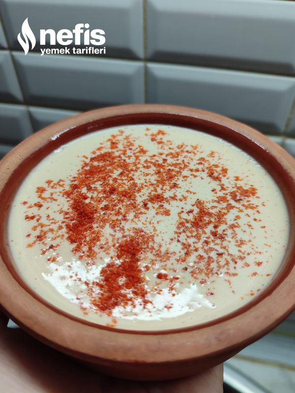- Soğuduktan sonra derin bir kaba alıp tahin, tuz, kimyon ve yoğurdu ekleyip blender ile eziyoruz.
