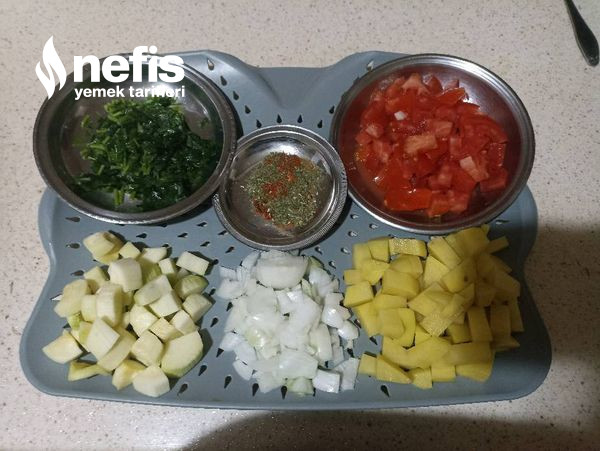 - Kabak ,soğan ,patates, maydanoz ,domates doğranır.