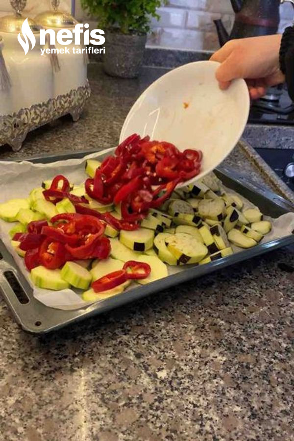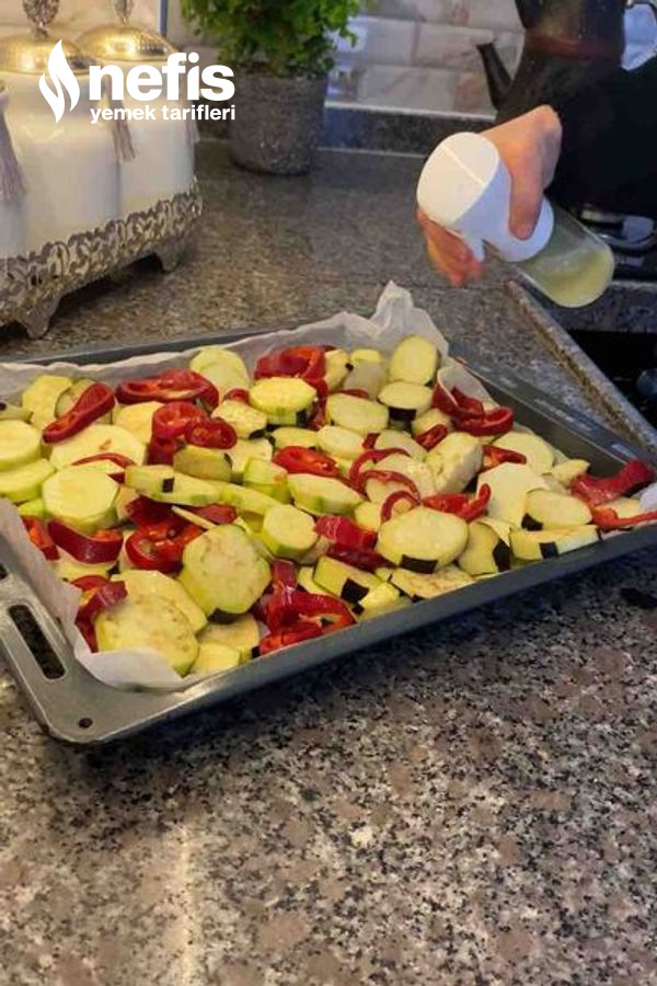 - İlk olarak zerzevatları doğrayıp çok az yağda fırında kızartalım.