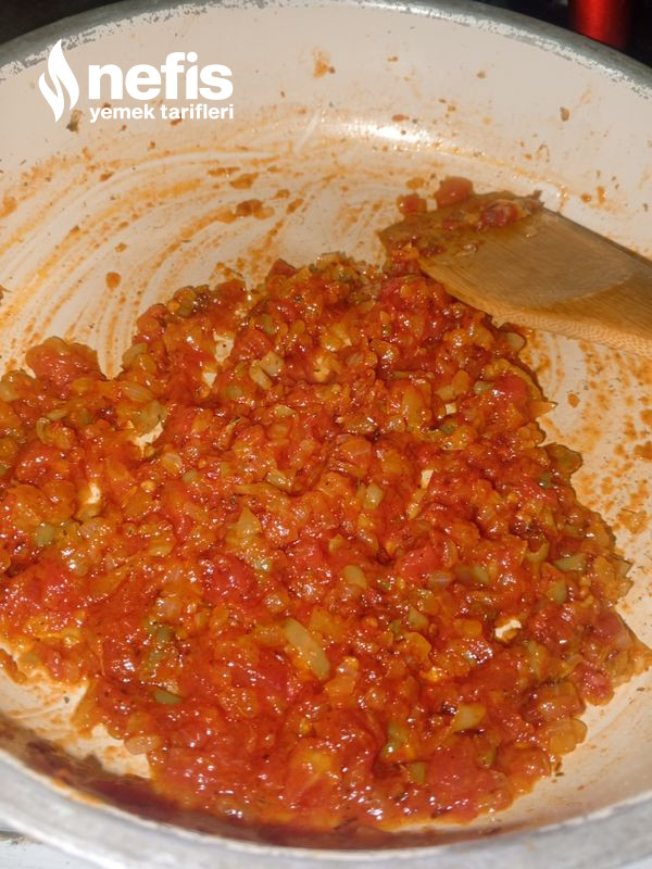 3. Ardından salçayı 5 dakika sonrada domates sosunu ekleyin.