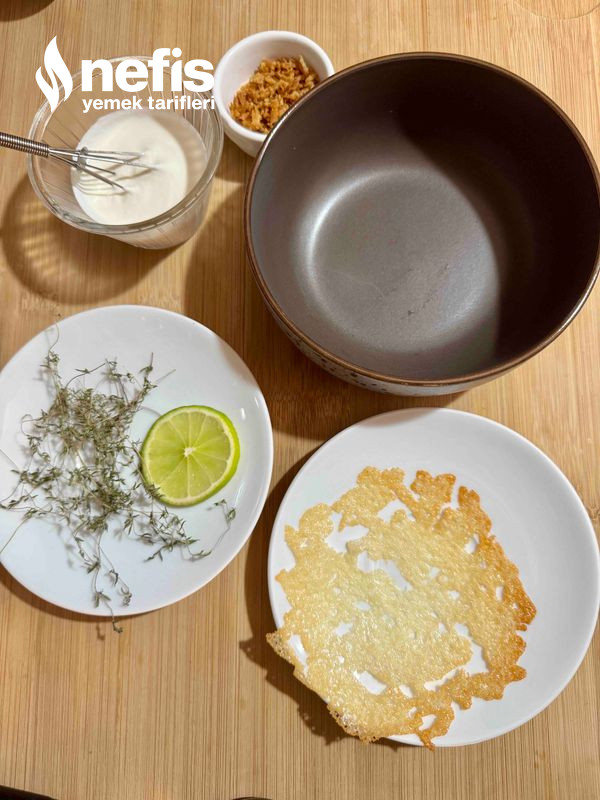 - Labne ve yoğurdu karıştıralım. Çorba üzerine damla halinde damlatalım. Çubuk ile çember halini verelim. Ortasına çıtır soğan koyalım. Kol kekiklerimizi serpiştirelim.