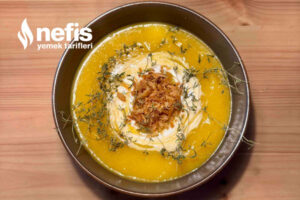 - Labne ve yoğurdu karıştıralım. Çorba üzerine damla halinde damlatalım. Çubuk ile çember halini verelim. Ortasına çıtır soğan koyalım. Kol kekiklerimizi serpiştirelim.