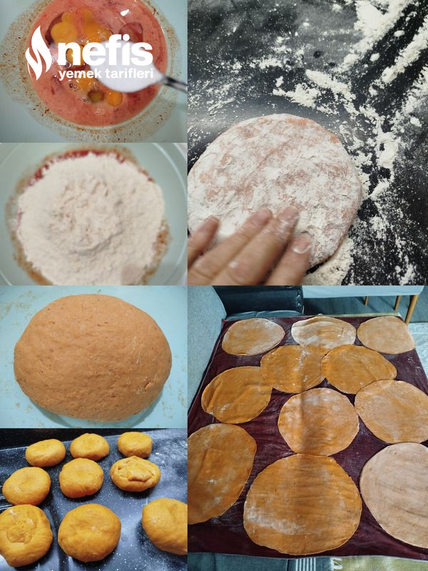 - Pişen biberleri blandirdan geçirin püre haline getirin, süt ,yumurta ,tuz karıştırın ,kontrollü bir halde unu ekleyin, sert bir hamur elde edin 10 dk dinlendirin.