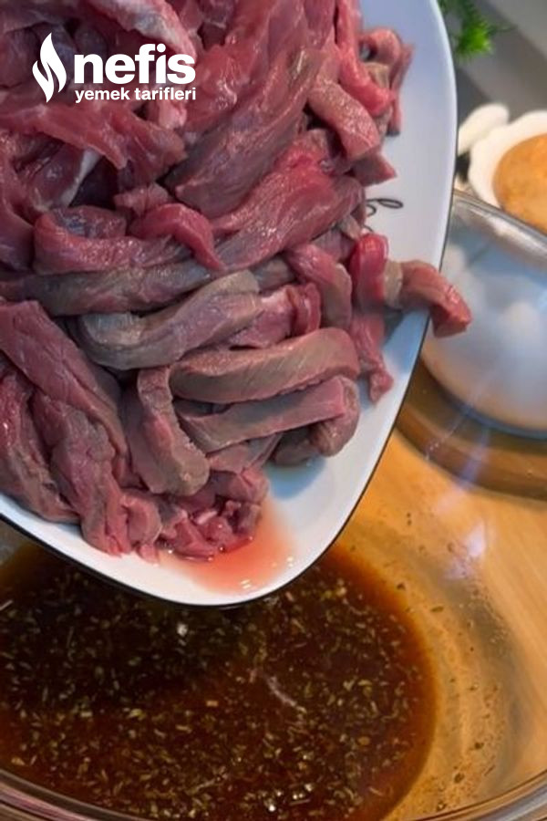 3. Marine için gereçlerimizi karıştıralım ve içerisine doğranmış olduğumuz etleri alalım.