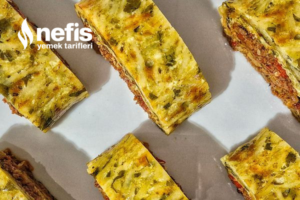 2. Fırın tepsisine yağlı kağıt serilip üzerine yayılır ,düz biçimde ve 200 derece evvelden ısınmış fırında üzeri kızarana dek pişirilir.