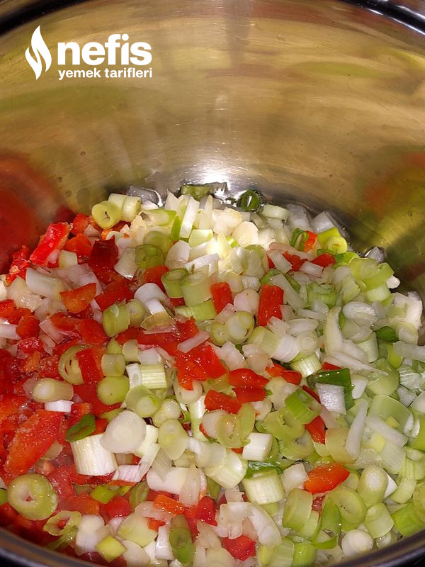 - Diğer taraftan uygun bir tavaya yağı alalım kızgın tavaya ince ince kıyılmış bütün zerzevatları maydanoz hariç ek edelim yumuşayana kadar kavuralım.