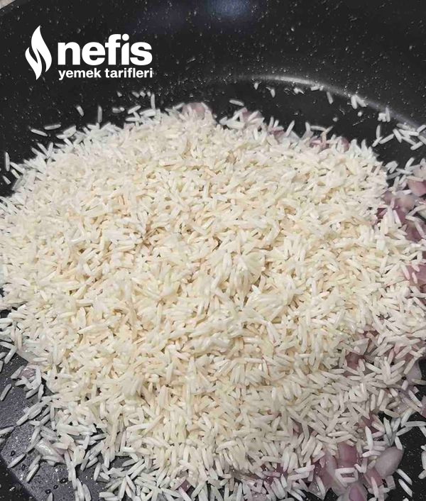 4. Bir tencerede yağı ısıtın, soğan ve sarımsağı saydamlaşana kadar soteleyin ve akabinde pirinci ekleyin.