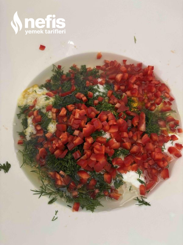 - Sıvı yağımızı, yoğurdu, yumurta akını, kabartma tozunu ,tuzu ve zerdeçalımızı kabımıza alıp güzelce karıştıralım.