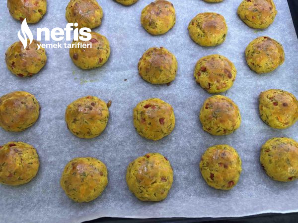 - Mandalina büyüklüğünde yuvarlayıp tepsiye dizelim, üzerine yumurta sarısı sürüp pişirelim.