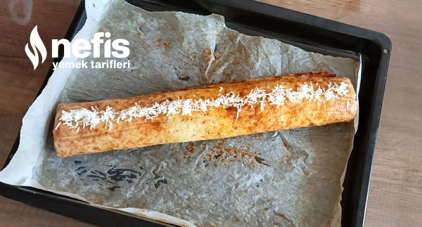 - Yaptığımız rulonun üzerine kaşar peynir serpilim ve eriyene kadar fırına verelim.