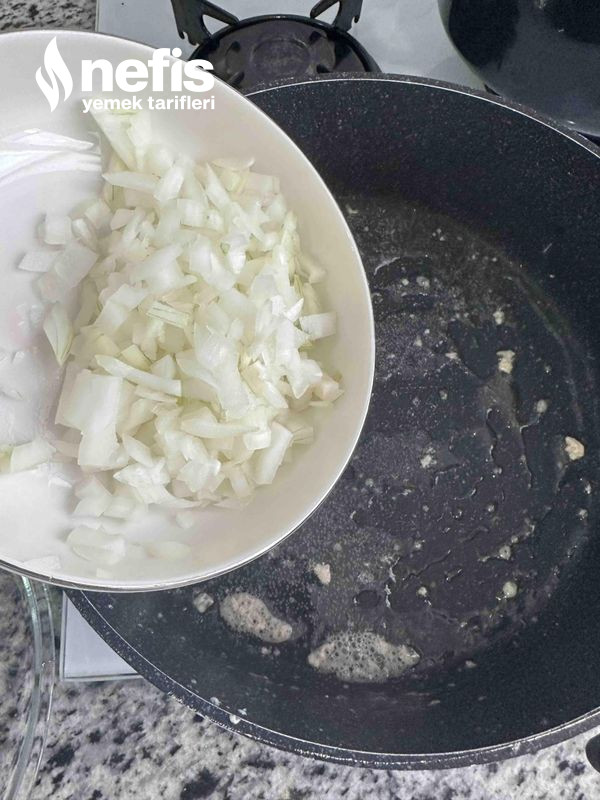 - Ardından küçük küp halinde doğranmış soğanları ekleyin kavurun.