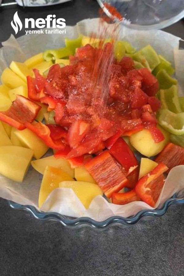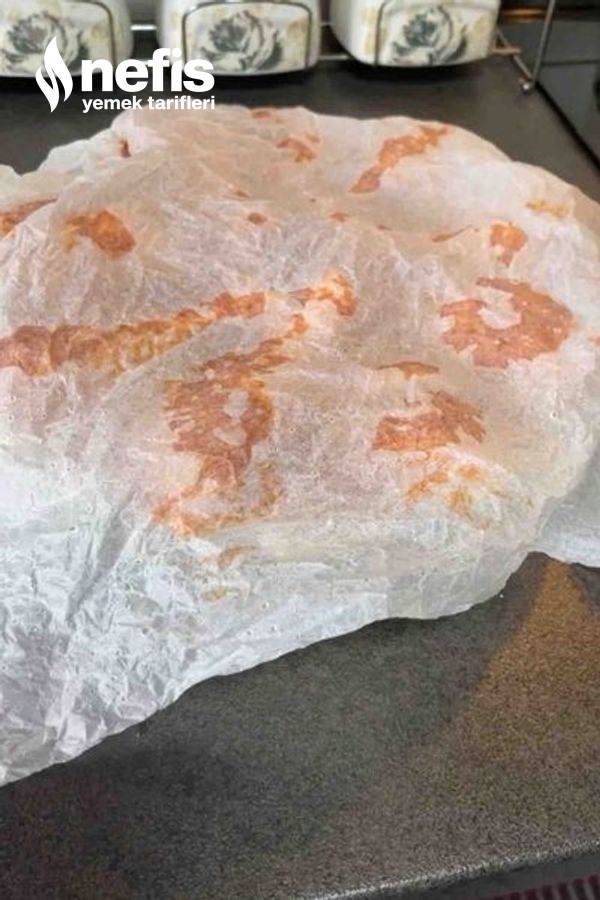 6. Islatmış olduğunuz fırın kağıdını üzerine kapatın evvelden ısıtılmış 200 derece fırında bir saat pişirin.