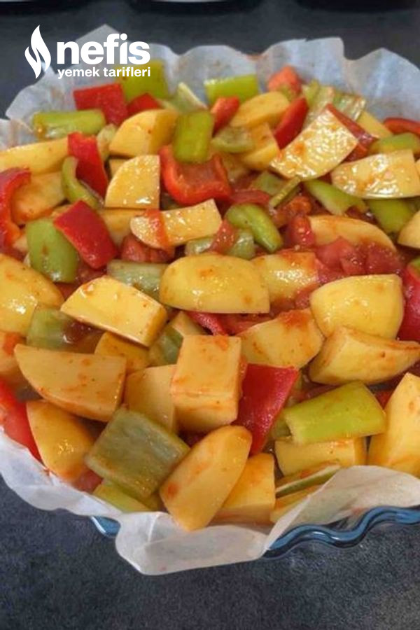 3. Sebzeleri istediğiniz büyüklükte doğrayıp fırın kağıdı serili fırın kabına yerleştirin.