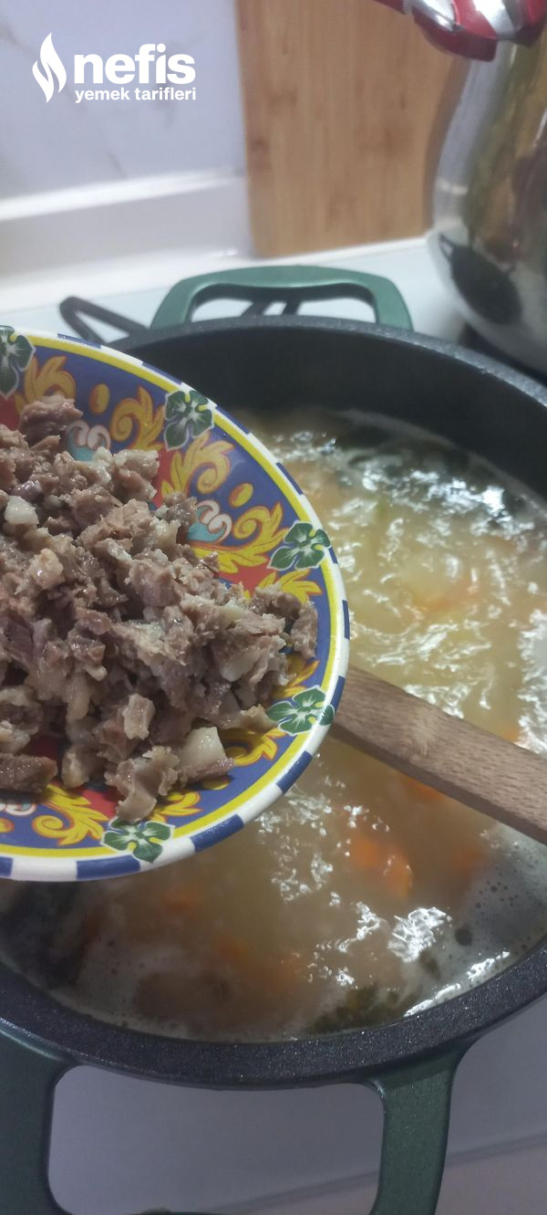 - Kemikli eti kaynatalım pişsin. Etini didelim suyuda kaynar bir formda beklesin.