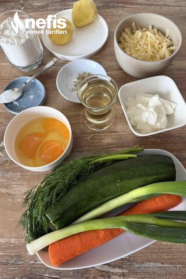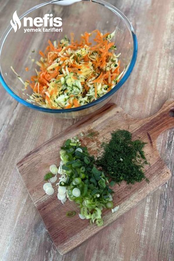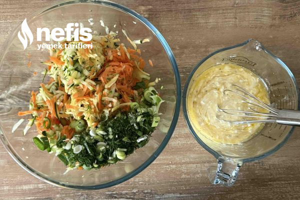 - Patates, havuç ve kabağı geniş bir kasenin içine rendeleyin.