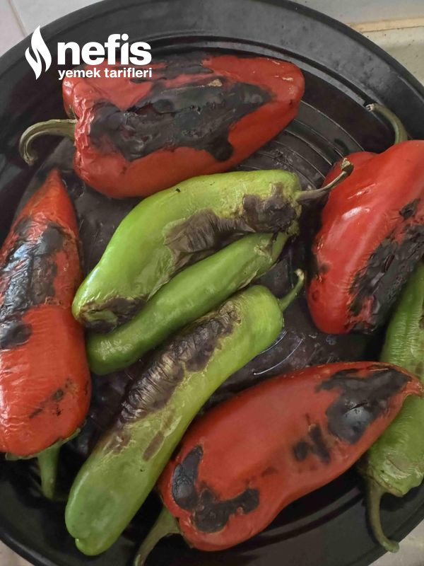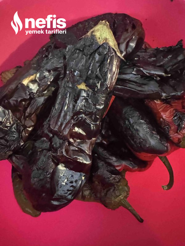 2. Közmatikte patlıcan, kapya biber ve yeşil biberleri közleyelim.