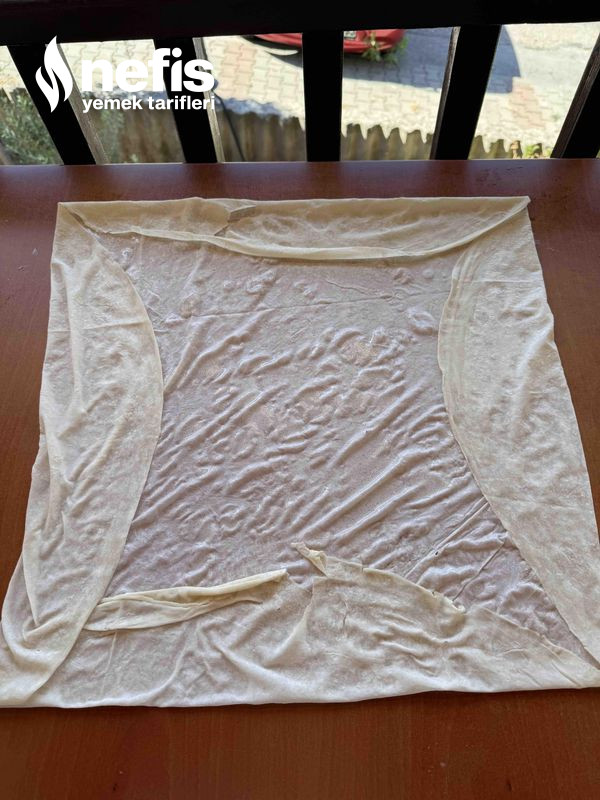 10. Yufkamızın bir adedini tezgah üzerine alalım, kenarlarından içe hakikat katlayarak kare haline getirelim.