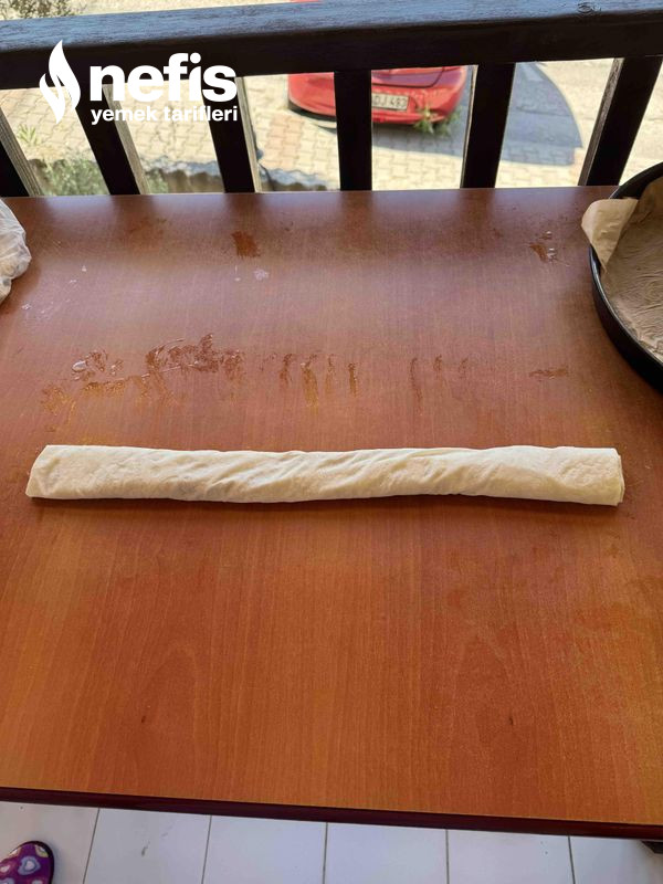 12. Börekleri 3-4 parmak kalınlığında eşit olacak formda keserek tepsimize yerleştirelim.