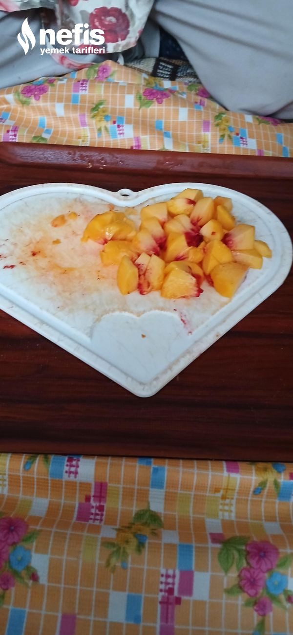 - Şeftalilerin kabuğunu soyup doğrayalım.