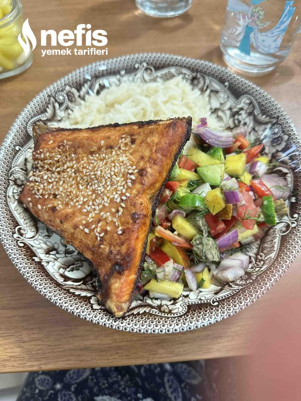 - Somonlara hazırladığımız sosu döküyoruz güzelce buladıktan sonra( fırçayla da sürebilirsiniz) ,susamları ekleyip 210 derece fırında üzeri kızarana kadar pişiriyoruz.