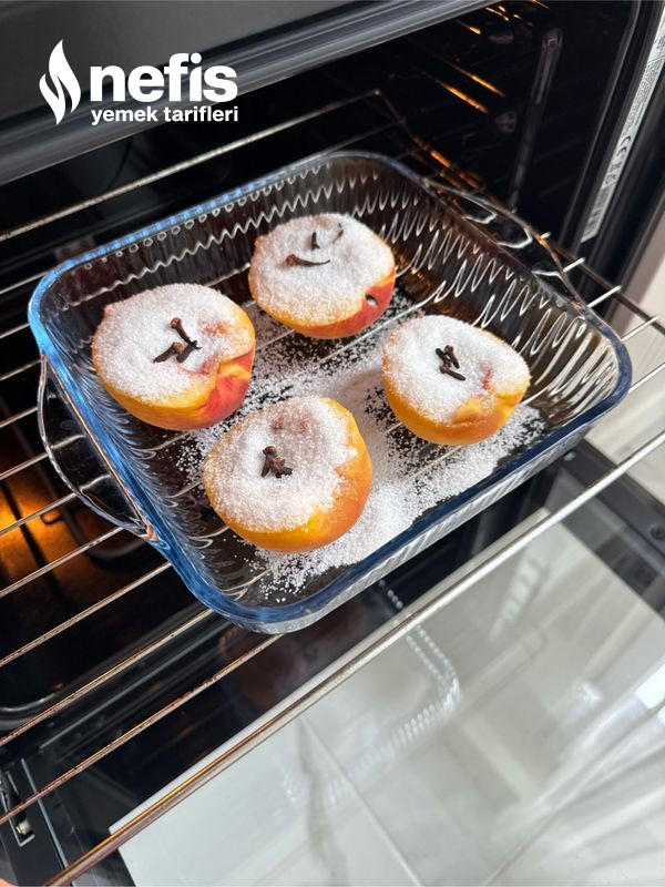 - Her bir dilimin üzerine iki yemek kaşığı toz şeker döküyoruz ,ortalarına iki adet karanfil bırakıyoruz.