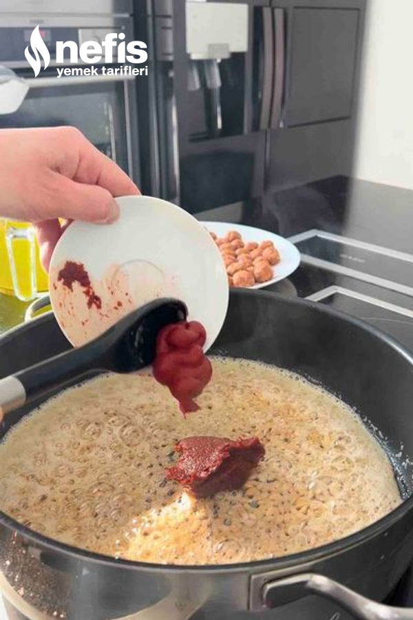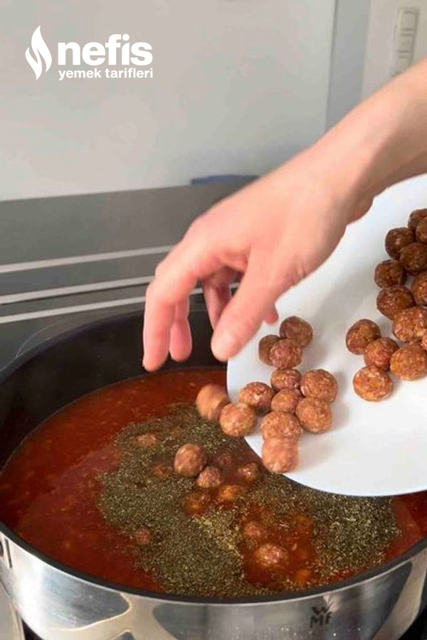 - Şekillendirdiğiniz köfteleri tencereye ekleyin ve üzerine et suyunu dökün.