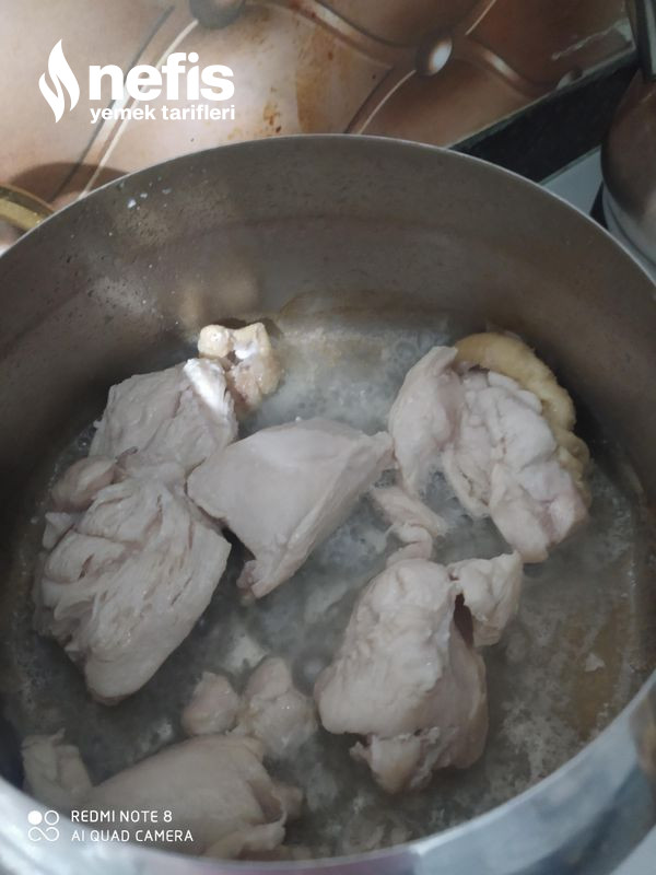 - İlk olarak tavuk göğsünü doğrayıp 30 dakika haşlayalım.