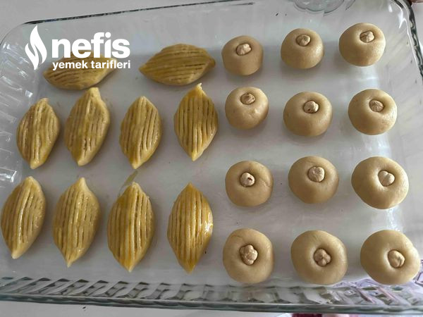 - Hamuru cevizden daha büyük kesimler alıp hal veriyoruz, ortalama 25 adet çıkıyor üzerine biçim verip yumurta sarısını sürdükten sonra evvelden ısıtılmış 175 derecelik fırında üzeri kızarıncaya kadar pişirelim.