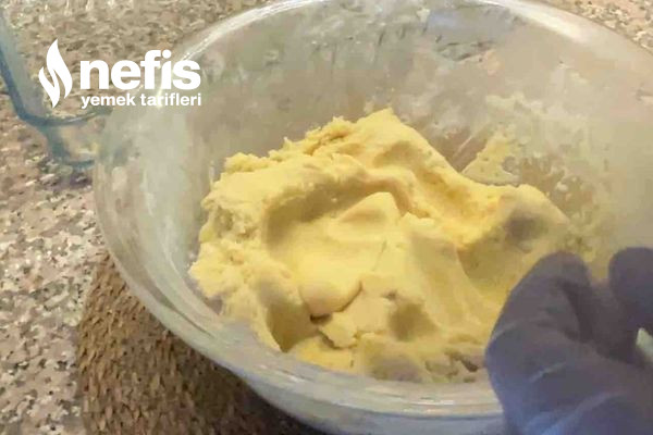 3. Kulak göğsü kıvamında hamur elde ediyoruz, cevizden biraz daha büyük modüller koparıp form veriyoruz.