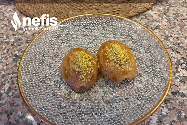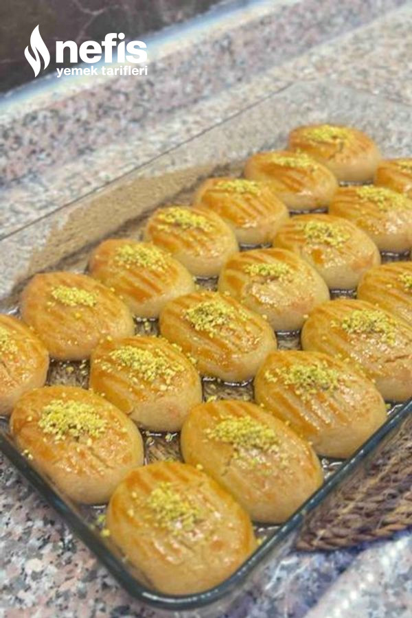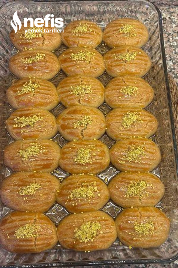 4. Üzerine yumurta sarısı ve çatal yardımı ile biçim veriyoruz 180 derece fırında üzeri kızarıncaya kadar pişiriyoruz birinci sıcağı çıkınca şerbeti üzerine döküp 2-3 saat dinlendiriyoruz.