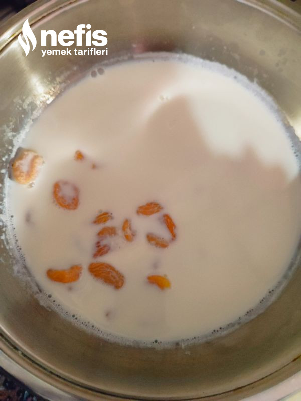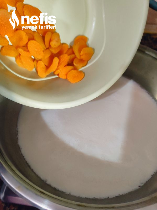 - İlk evvel sütü kaynatıp içine yıkanmış kayısıları atalım.