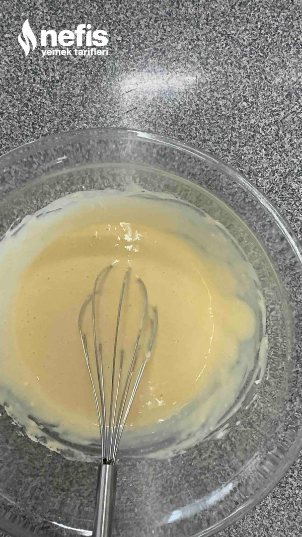 1. Geniş bir kasede yumurta ve hurma suyu konsantresini çırpın. Süt ek edin.
