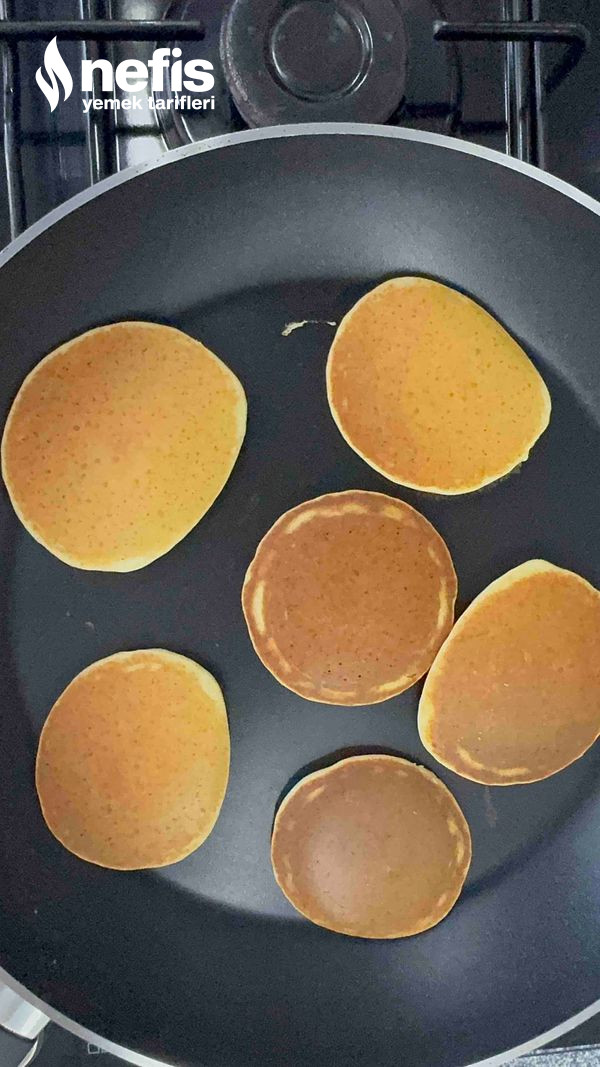 4. Karışımdan 3-4 kaşık kadar alıp tavaya dökün, üzeri göz göz olunca çevirip başka tarafını pişirin.