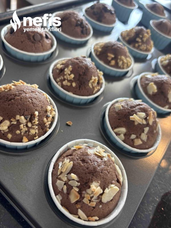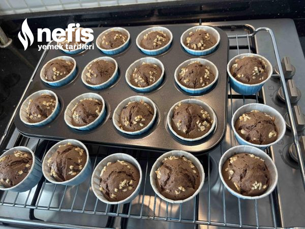 4. Muffin kalıplarına dağıtalım. Yarısından bir tık üstüne kadar dolduralım.