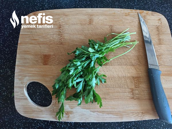 - Maydanoz, domates ve salatalığı doğrayalım.