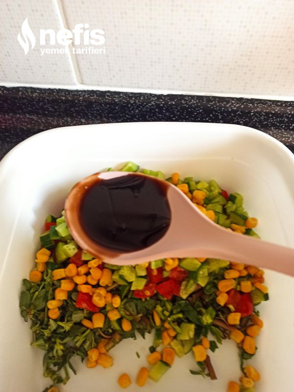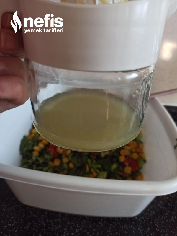 - Sosu için gerekli gereçleri hazırlayıp, salatamıza ek edelim ve karıştıralım.
