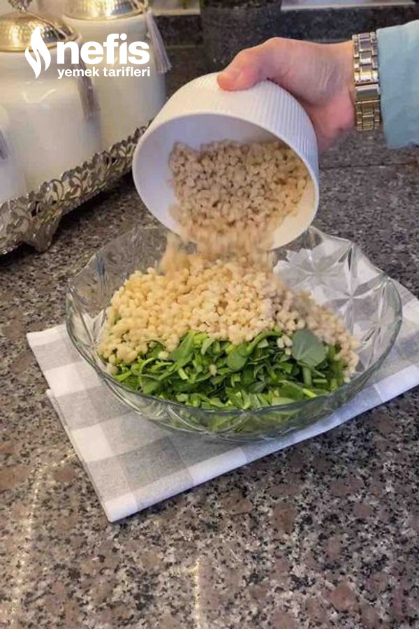 - Temizleyip doğradığımız semiz otlarını ve öncede haşladığımız buğdayı uygun kaseye alalım.