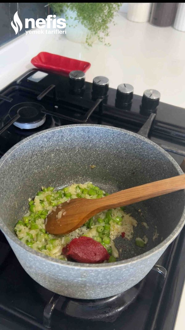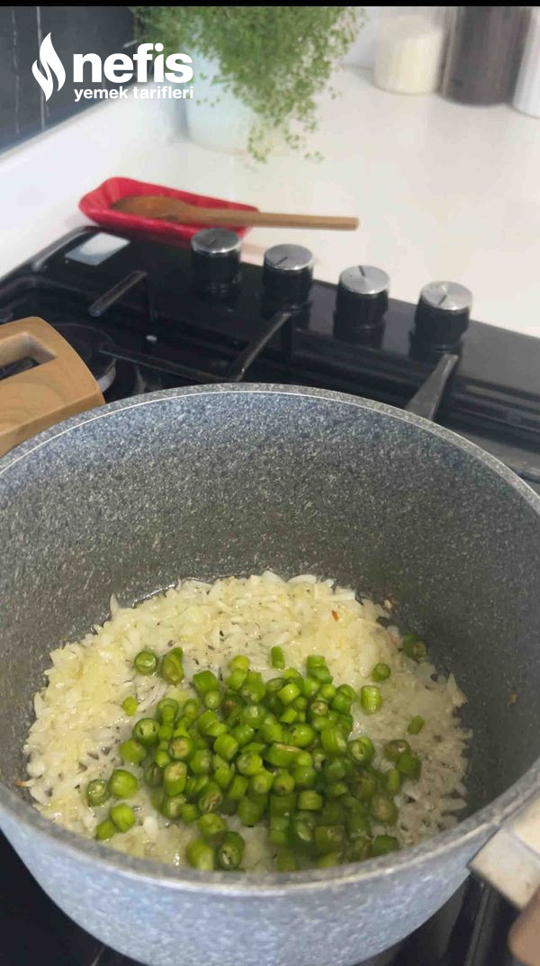 - Yemeklik doğradığımız soğanlarımızı pembeleşinceye kadar zeytinyağı ile kavurduktan sonra küçük küçük doğradığımız biberlerimizide dahil edip, kavurmaya devam ediyoruz.