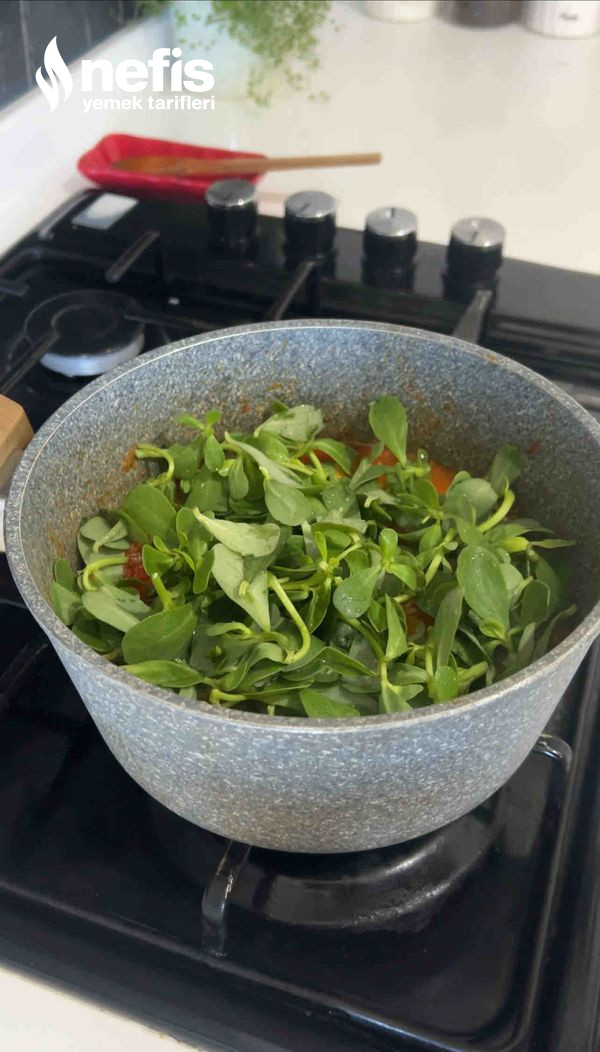 - Kabaklar biraz piştikten sonra son olarak semizotunuda en üste ekleyip biraz daha kaynatıyoruz. Semizotları kendini bırakınca yemeğimiz servise hazır.